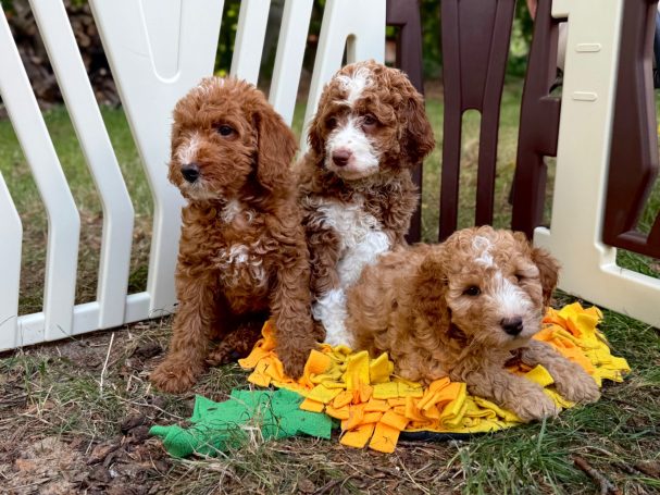 In unserer Galerie laden wir Sie ein, die besondere Verbindung zwischen Mensch und Hund zu entdecken. Unsere Goldendoodles vereinen Intelligenz, Freundlichkeit und ein liebevolles Wesen – Eigenschaften, die jeden Moment mit ihnen einzigartig machen. Ob als neugierige Welpen oder treue Begleiter im Alltag – diese Bilder erzählen Geschichten von Vertrauen, Lebensfreude und echter Verbundenheit.
