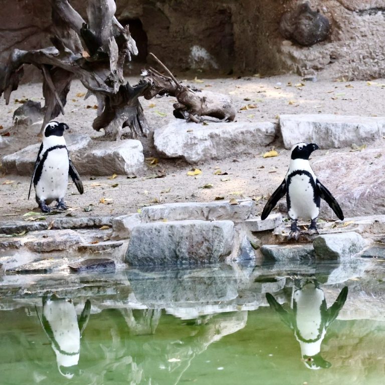Pinguine am Wasser Ihr Spiegelbild erzählt von Anmut und Stille Harmonie..