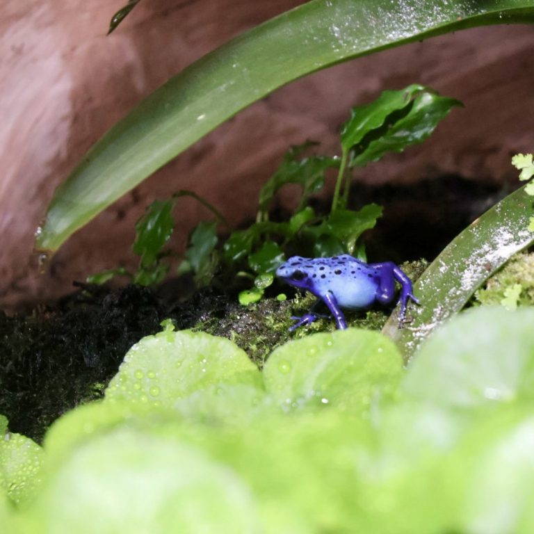 Der blaue Frosch glänzt wie ein Juwel, Klein, doch voller Zauber und ein funkeln der Natur.